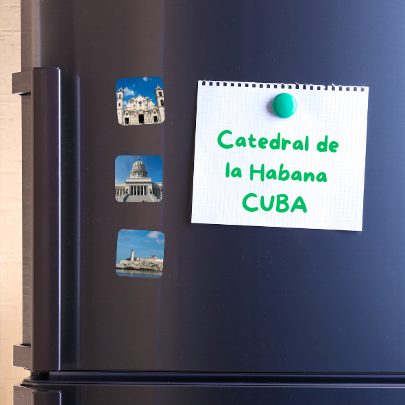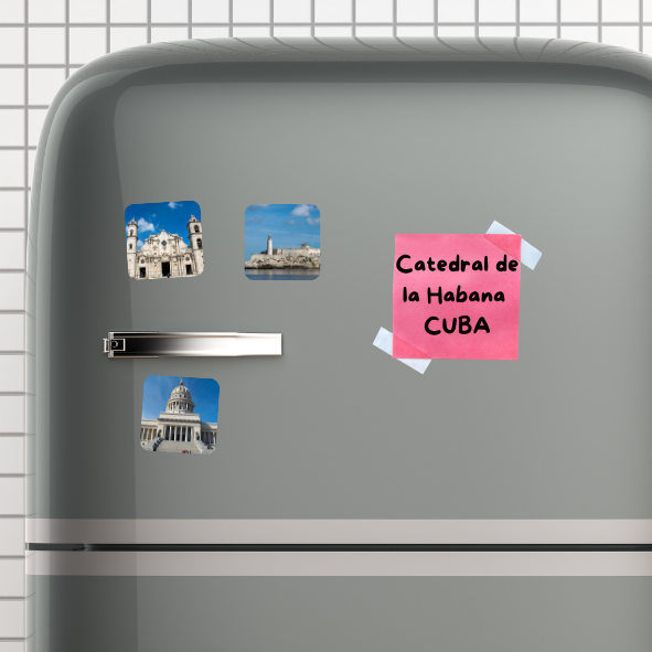 Catedral de la Habana, es un templo católico, ubicado en el corazón de La Habana Vieja, en la zona más antigua de la ciudad, declarada por la UNESCO en 1982 Patrimonio de la Humanidad. Es la sede episcopal de la Arquidiócesis de San Cristóbal de La Habana. Este iman es un recuerdo que late en el corazón de quienes nacieron allí o lo visitaron alguna vez,  símbolo de orgullo, identidad y nostalgia que convierte cada mirada en un viaje a las raíces y memorias más queridas.