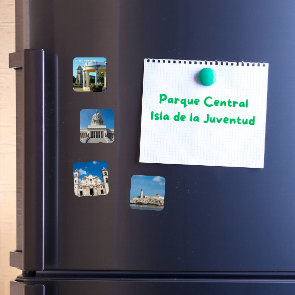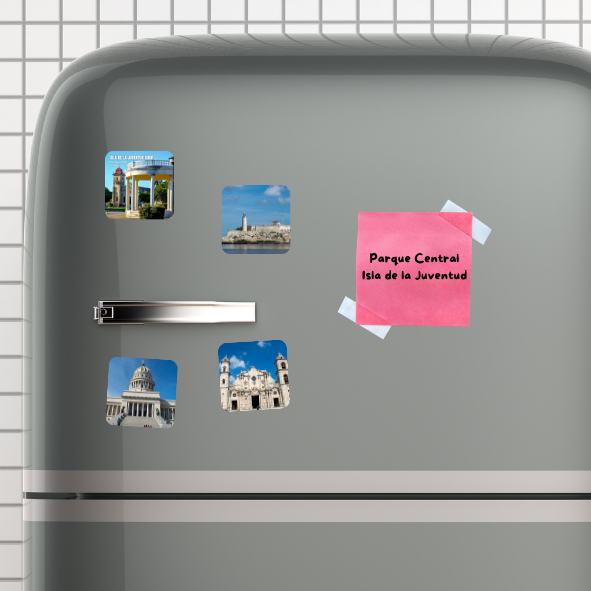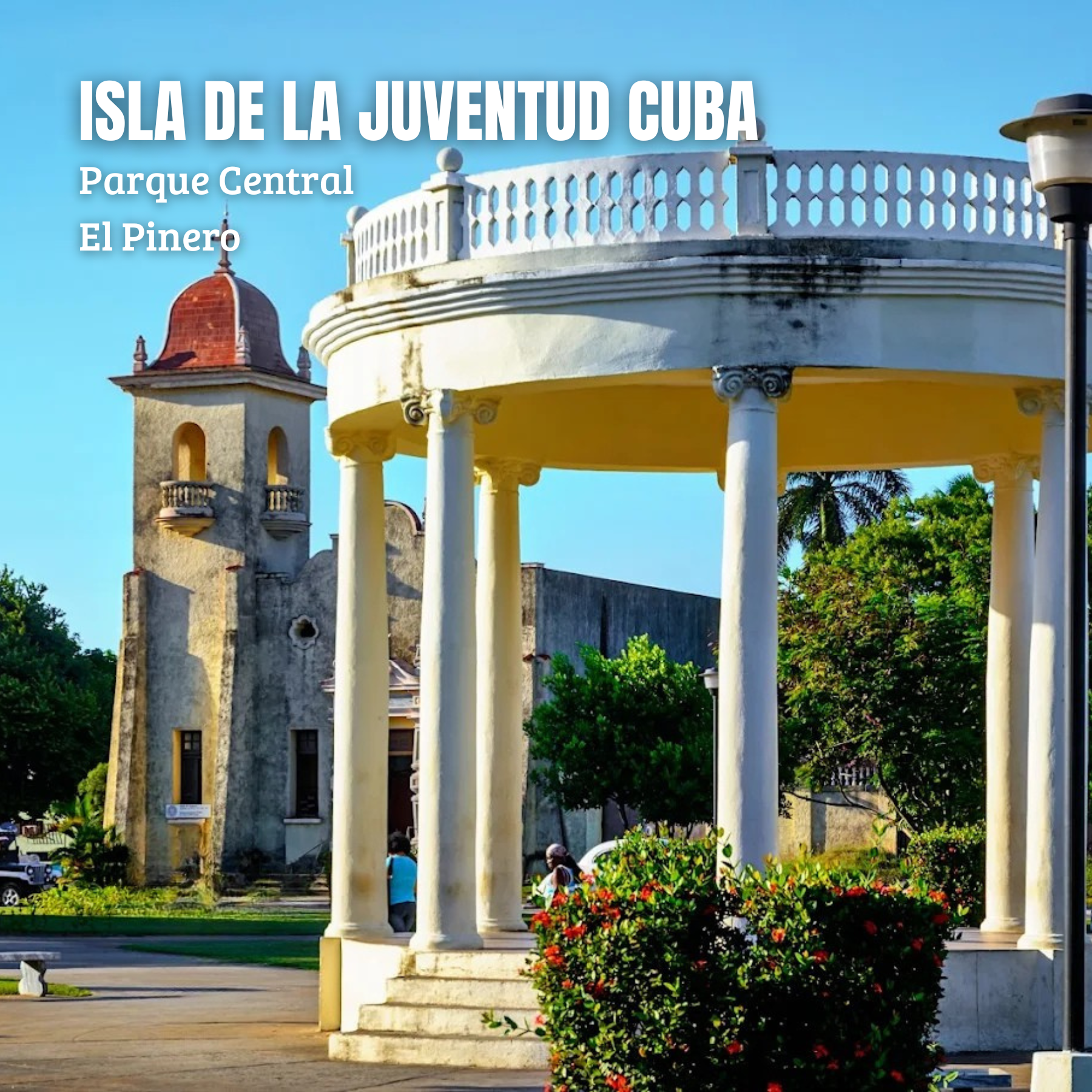 Parque Central El Pinero (Isla de la Juventud), su creación data de la segunda mitad década de 1920. Lugar de encuentros, amores y esparcimiento. Este iman es un recuerdo que late en el corazón de quienes nacieron allí o lo visitaron alguna vez,  símbolo de orgullo, identidad y nostalgia que convierte cada mirada en un viaje a las raíces y memorias más queridas.