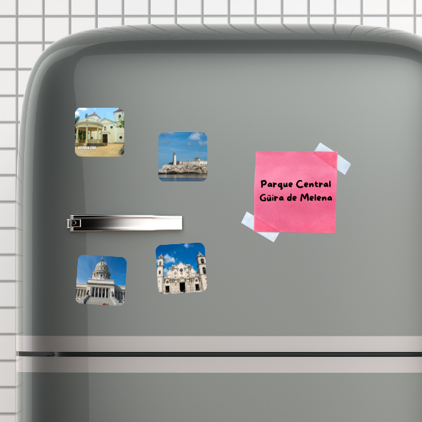 Parque Central (Güira de Melena), principal centro urbano de la ciudad fundada en el 1779.  Se otorga la condición de municipio en 1878 y se crea el primer ayuntamiento un año despues. Este iman es un recuerdo que late en el corazón de quienes nacieron allí o lo visitaron alguna vez,  símbolo de orgullo, identidad y nostalgia que convierte cada mirada en un viaje a las raíces y memorias más queridas.