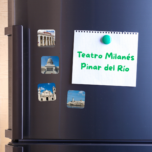 Teatro Milanés (Pinar del Río), construido en 1838 y es uno de los Ocho Grandes Teatros de la Cuba Colonial. Este iman es un recuerdo que late en el corazón de quienes nacieron allí o lo visitaron alguna vez,  símbolo de orgullo, identidad y nostalgia que convierte cada mirada en un viaje a las raíces y memorias más queridas.